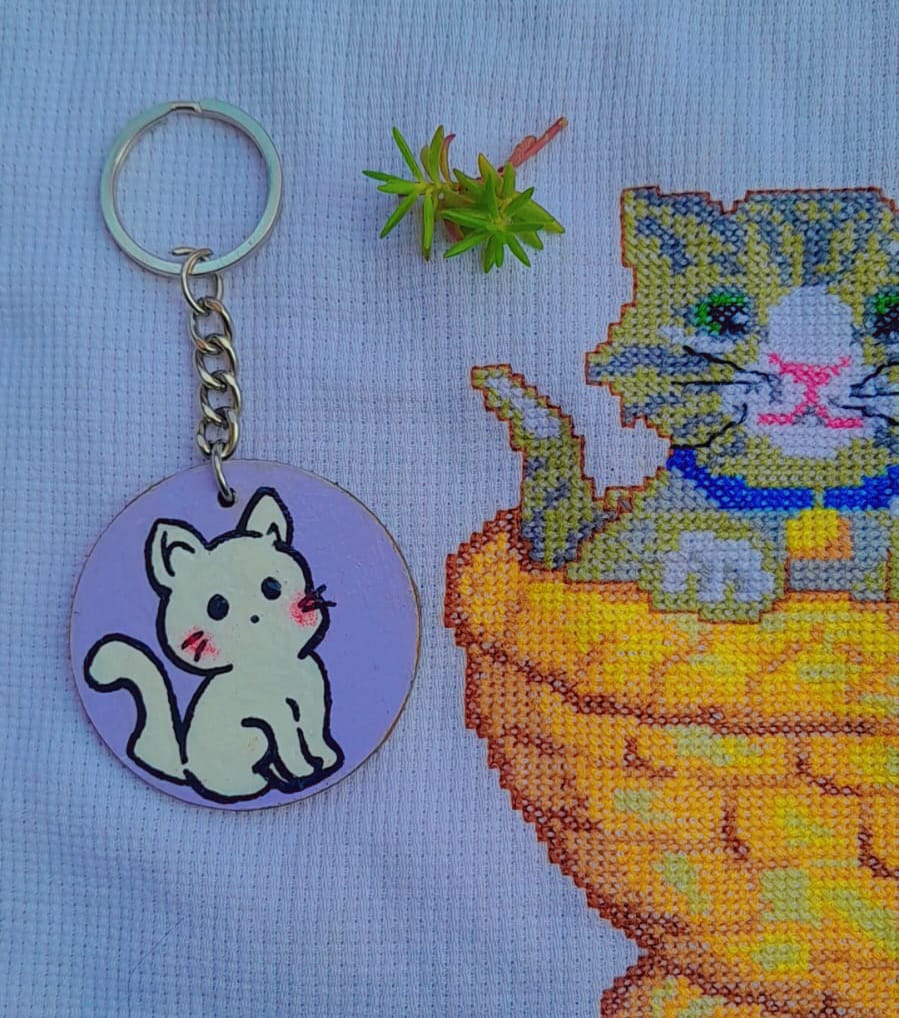 Elevate your everyday essentials with a touch of artisanal whimsy. The Whisker Charm isn’t just a utility; it’s a miniature piece of wearable art designed for those who find joy in the finer, handcrafted details of life. Featuring a sweet, hand-illustrated feline friend set against a soothing lilac backdrop, this keychain captures the playful spirit of our favorite companions with a modern, minimalist aesthetic.
