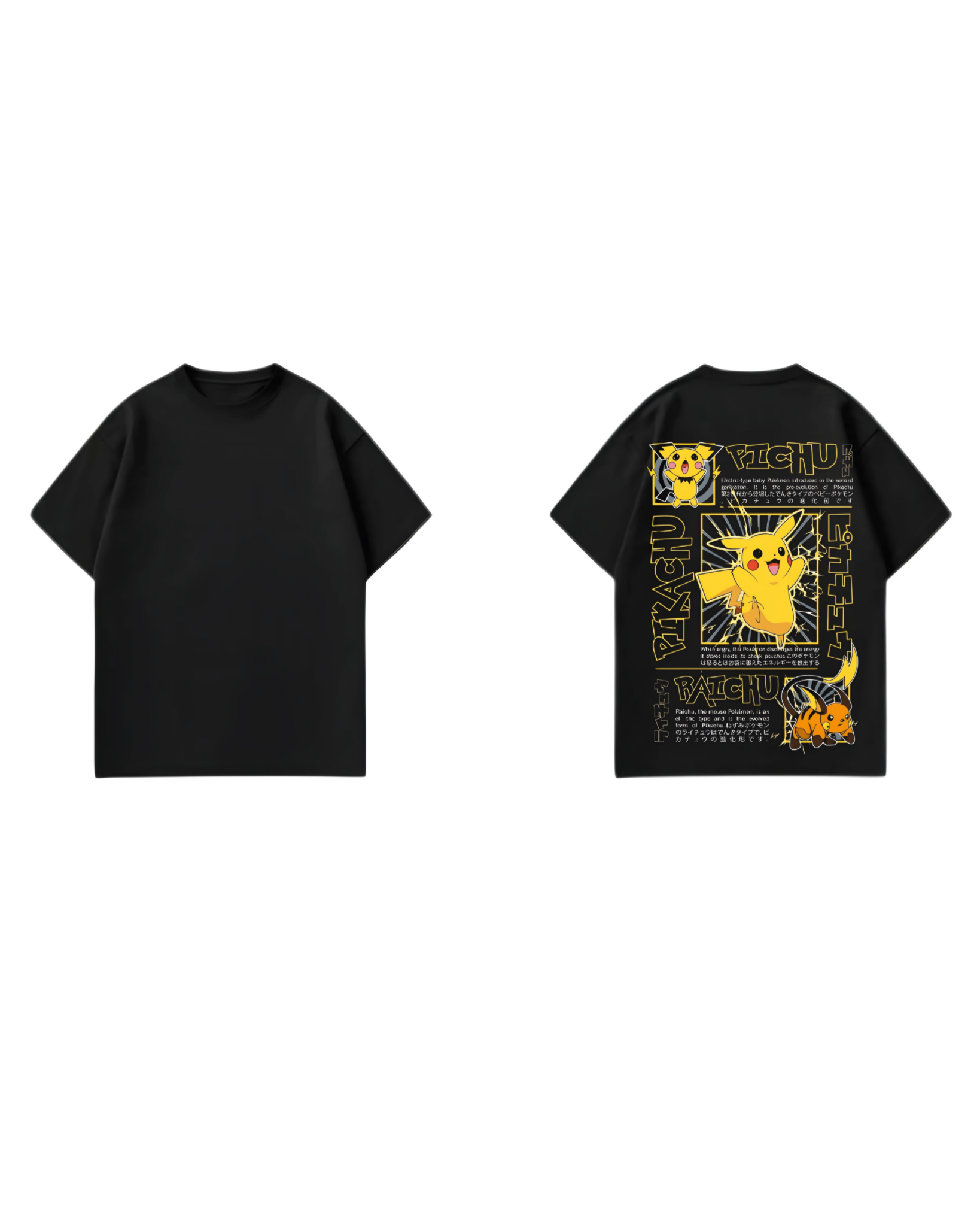 Step into iconic pop culture with the Pikachu Street Legacy Oversized T-Shirt, crafted for those who don’t just follow trends — they define them. Designed in a bold black base with striking yellow graphic artwork on the back, this piece blends anime nostalgia with elevated streetwear aesthetics. The detailed Pikachu panel print creates a statement look that feels both expressive and premium.